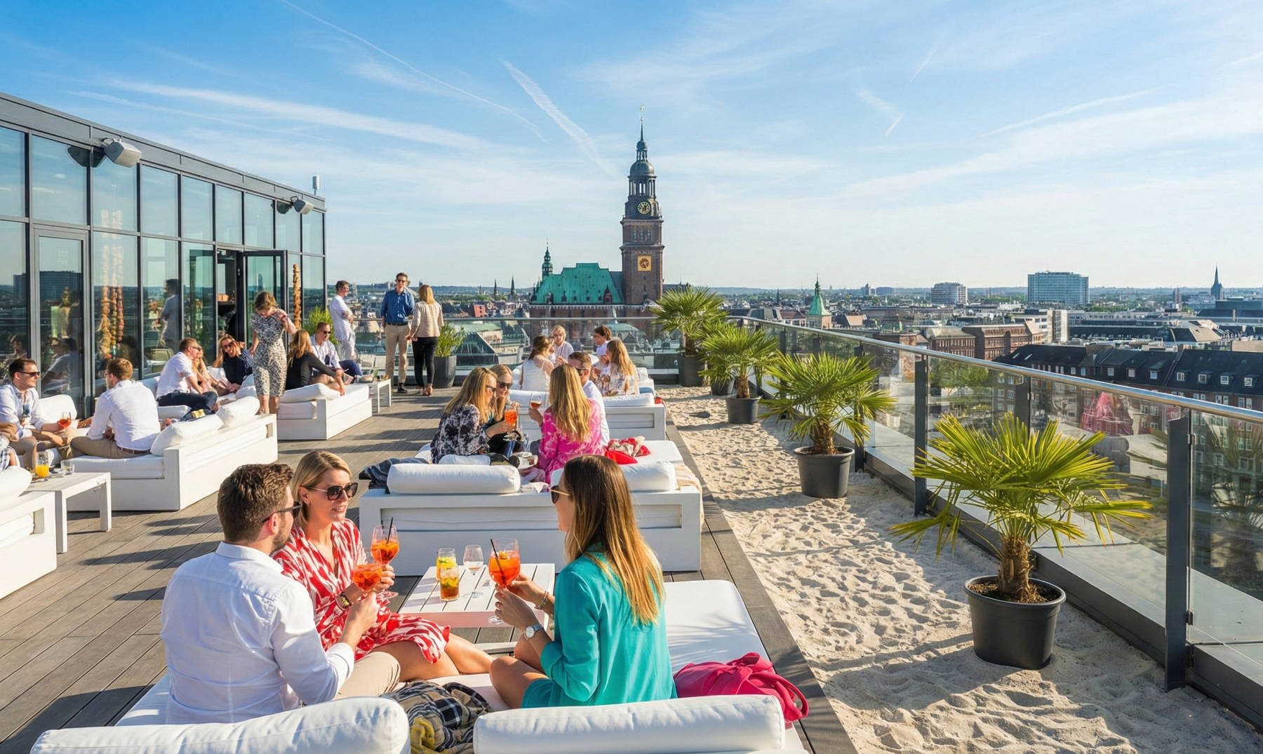 In den vergangenen Jahren hat die Elbmetropole eine geradezu atemberaubende Evolution in ihrer "vertikalen Gastronomie" durchlaufen. Längst vorbei sind die Zeiten, in denen man für einen gepflegten Drink mit Aussicht in verstaubte, anonyme Hoteltürme aus den Siebzigerjahren hinauffahren musste. Die heutige Szene der Hamburger Dachterrassen ist ein pulsierendes, facettenreiches Ökosystem für Feinschmecker und Nachtschwärmer. Sie bietet das volle Spektrum urbaner Lebensart: Von entspannten, sandigen Beach-Club-Vibes hoch über den alternativen Dächern St. Paulis bis hin zu absoluter High-End-Mixologie auf Sterneniveau in schwindelerregender Höhe, direkt gegenüber der majestätischen Elbphilharmonie.