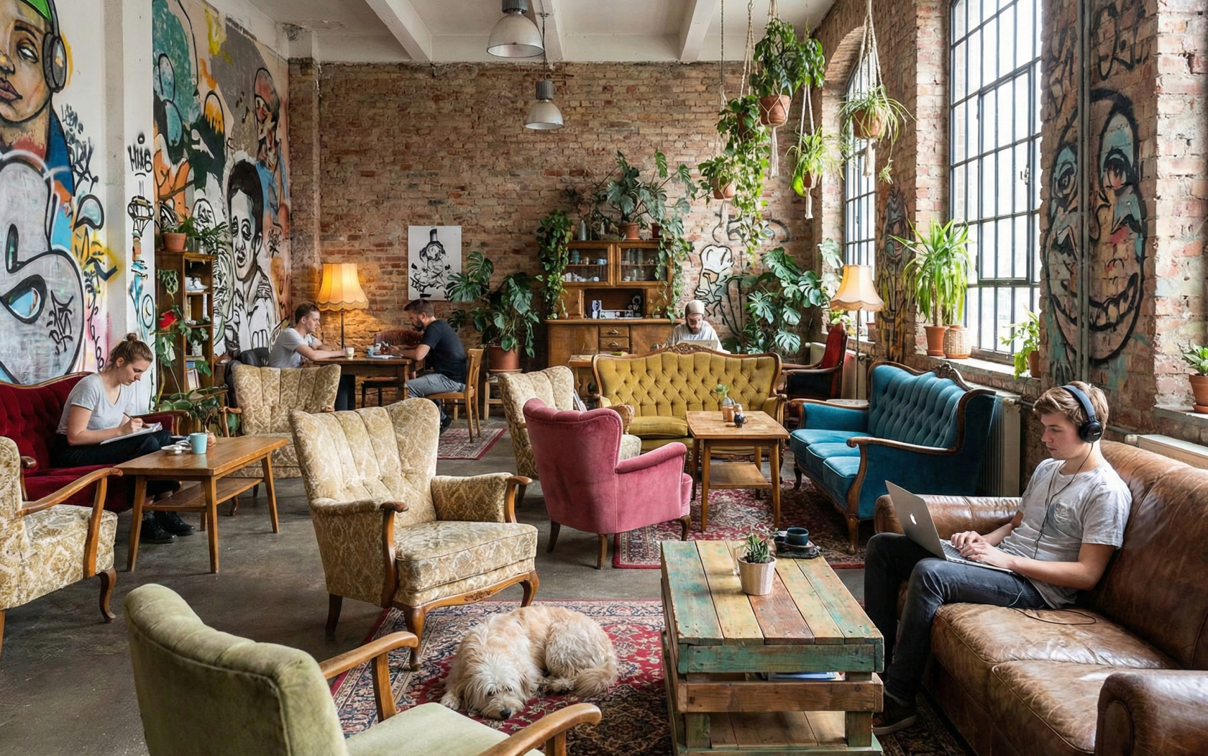 Die Einrichtung ist "raw", funktional und gemütlich – typisch betahaus eben. Man spürt sofort den Do-it-yourself-Geist. Das Herzstück ist das Café im Erdgeschoss, das auch für Nicht-Mitglieder offen ist und als zentraler Networking-Hub dient. Das betahaus bietet sehr flexible Modelle, vom günstigen Tagesticket bis zum festen Team-Büro. Die Events hier sind legendär und reichen von Pitch-Nights bis zu Skill-Sharing-Workshops. Wer formelle Krawattenträger sucht, ist hier falsch; wer Inspiration und eine echte Gemeinschaft sucht, ist goldrichtig.