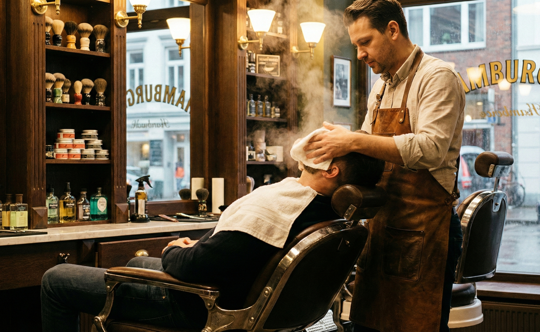 Das Herzstück der Barbershop-Erfahrung ist das Grooming – die ganzheitliche Pflege von Kopfhaar und Bart. Die Meister in diesen Hamburger Salons beherrschen die Kunst des "Fadings" bis zur absoluten Perfektion. Hierbei wird das Haar an den Seiten und im Nacken mit der Haarschneidemaschine und der Klinge so millimetergenau in verschiedenen Längen gekürzt, dass ein völlig nahtloser, schattierter Übergang von nackter Haut zum längeren Deckhaar entsteht – eine Technik, die höchste Konzentration und ein immenses Maß an Erfahrung erfordert. Das absolute Highlight ist jedoch die traditionelle Heißkompressen-Rasur. Dieses extrem entspannende Ritual beginnt mit dem Auflegen dampfend heißer, mit ätherischen Ölen getränkter Handtücher, um die Poren zu öffnen und die Barthaare aufzuweichen. Anschließend wird dicker, sahniger Rasierschaum mit einem echten Dachshaarpinsel in kreisenden Bewegungen aufgeschlagen und aufgetragen, bevor der Barbier mit ruhiger Hand und einem rasiermesserscharfen Rasiermesser die Haut spiegelglatt rasiert. Kühle Handtücher und feuchtigkeitsspendende, maskuline Balsame schließen die Behandlung ab. Für den modernen Hamburger Mann ist der regelmäßige Besuch in diesen Barbershops eine kleine, hochgeschätzte Auszeit vom stressigen Alltag, in der traditionelle Werte, exzellentes Handwerk und kompromisslose Pflege im Mittelpunkt stehen.
