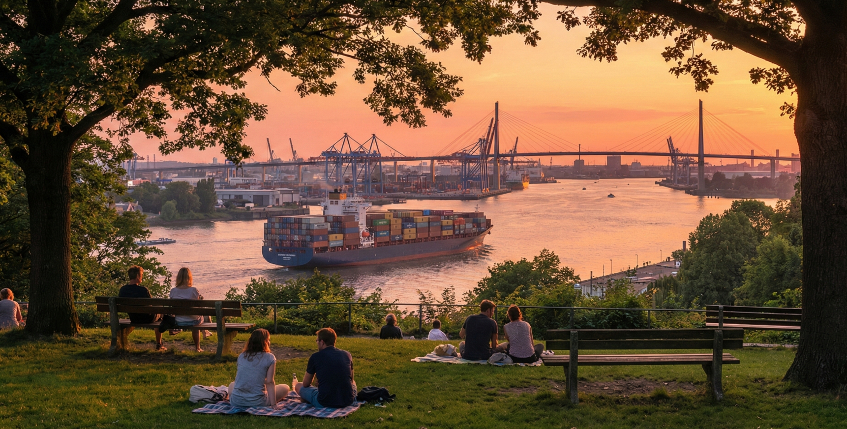 Das absolute Highlight und der Sehnsuchtsort vieler Altonaer ist jedoch die unmittelbare Nähe zur Elbe. Ein Spaziergang zum "Altonaer Balkon", einer hoch gelegenen Parkanlage auf dem steilen Geesthang, offenbart eines der atemberaubendsten Panoramen Norddeutschlands. Von hier oben blickt man direkt hinab auf den breiten Strom der Elbe, beobachtet die gigantischen Containerschiffe auf ihrem Weg in die weite Welt, sieht das geschäftige Treiben an den Containerterminals auf der gegenüberliegenden Hafenseite und bewundert die elegante Konstruktion der Köhlbrandbrücke in der Ferne. Folgt man den steilen Treppen oder Wegen hinab ans Wasser, erreicht man Neumühlen und Övelgönne. Hier reihen sich historische, winzige Kapitänshäuschen an einem malerischen Fußweg aneinander, während alte Museumsschiffe im Hafen dümpeln. Wenige Meter weiter beginnt der Elbstrand – ein echtes, feinsandiges Stück Strand mitten in der Metropole, wo man an heißen Tagen die Füße in den Sand graben und das maritime Herz Hamburgs in seiner ganzen, majestätischen Pracht schlagen spüren kann.