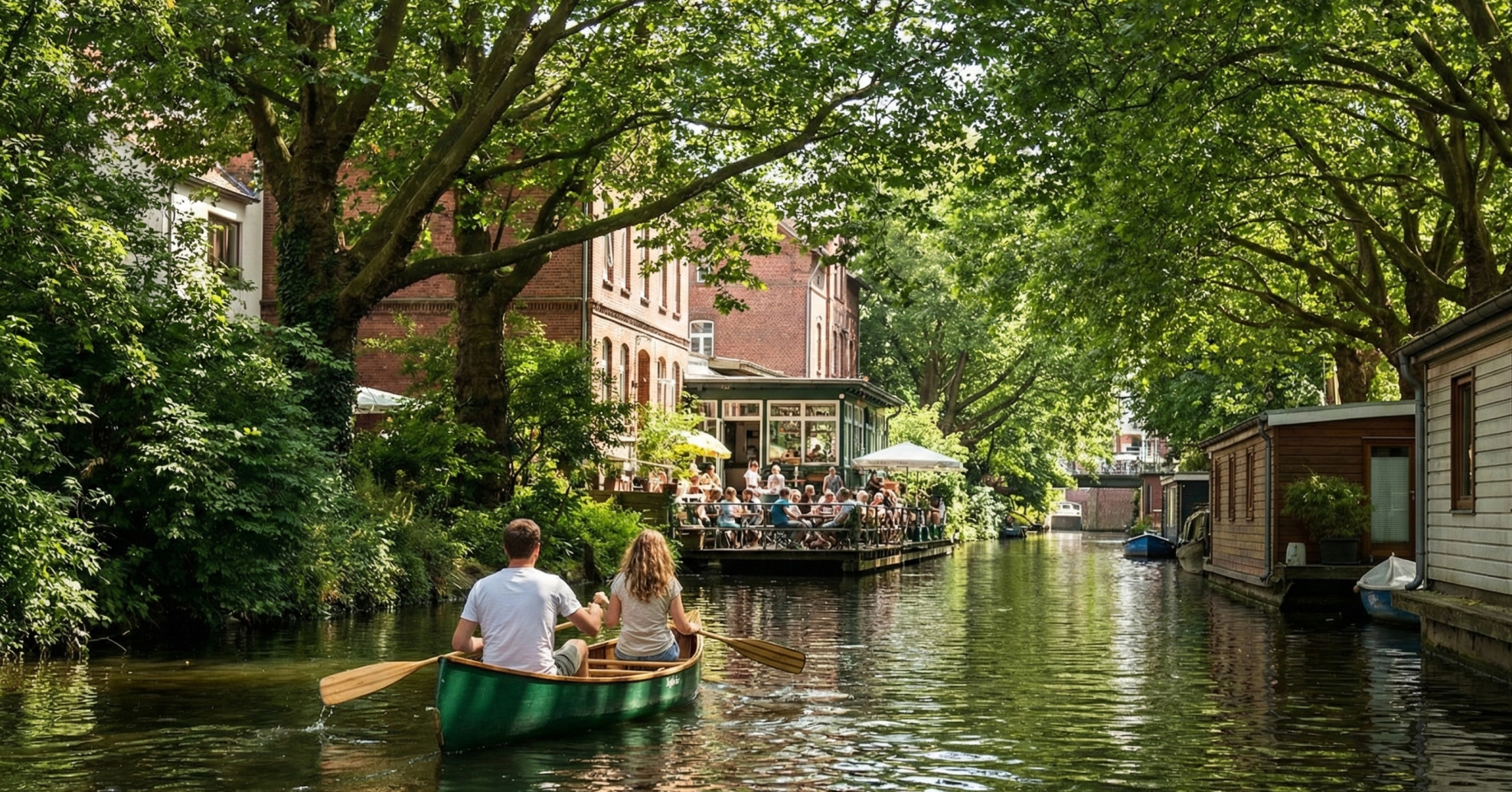 Ein absolutes Muss für jeden Hamburg-Sommer ist eine Tour mit dem eigenen (Leih-)Boot. Die Perspektive vom Wasser aus ist einzigartig. Man gleitet vorbei an den rückwärtigen Gärten prächtiger weißer Stadtvillen in Harvestehude und Winterhude, die man von der Straße aus nie sehen würde. Trauerweiden lassen ihre Äste tief ins Wasser hängen und bilden grüne Tunnel, durch die man hindurchpaddelt. Die Stille auf den kleineren Kanälen, wie dem Osterbekkanal oder dem Goldbekkanal, ist verblüffend, obwohl man sich mitten in der Millionenstadt befindet.