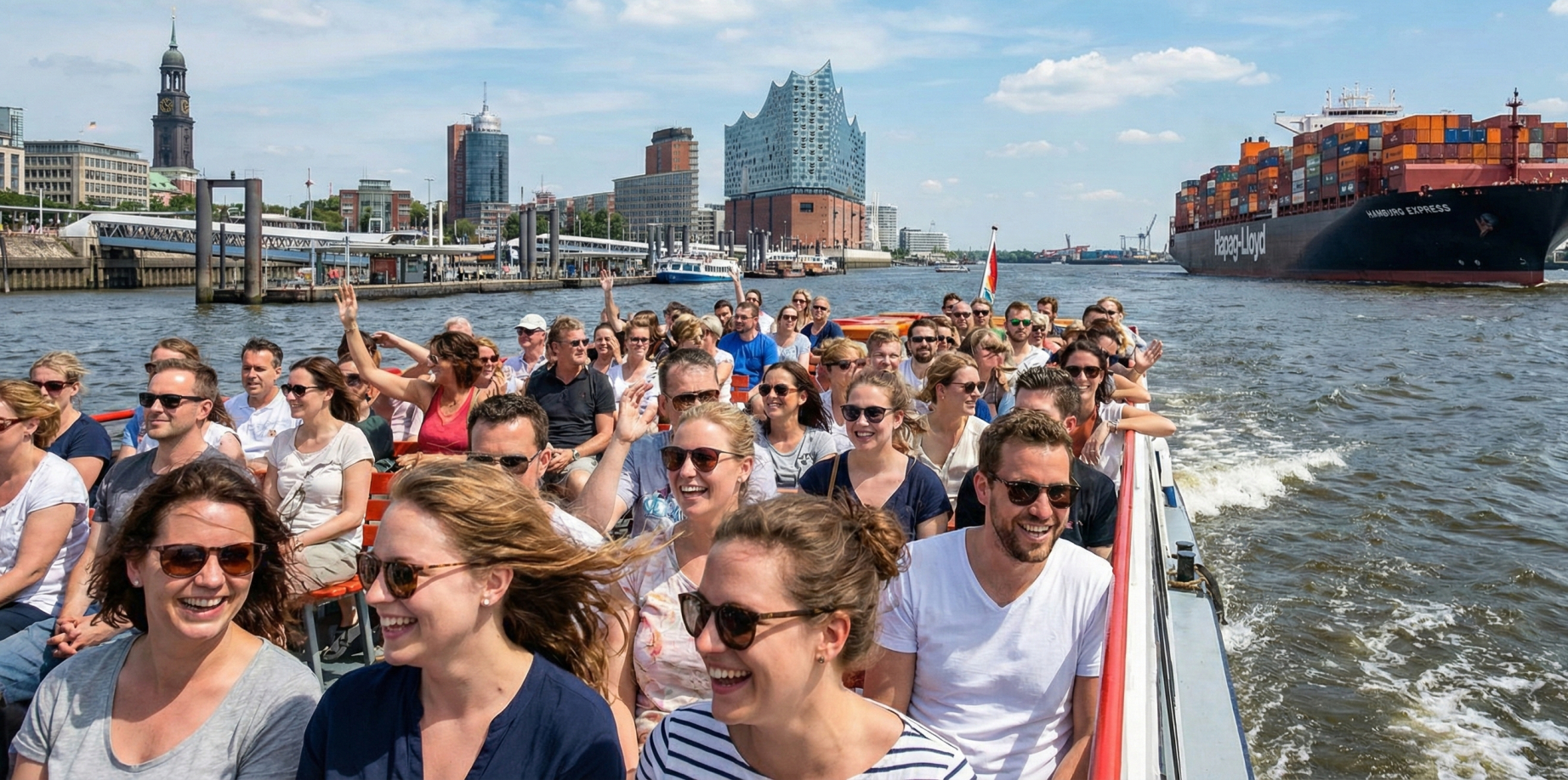 Hamburg ohne Hafen ist undenkbar. Und im Sommer, wenn das Wasser der Elbe in der Sonne glitzert und die leichte Brise die Hitze der Stadt erträglich macht, zieht es alle an die Landungsbrücken. Natürlich kann man hier für viel Geld eine klassische Hafenrundfahrt mit den traditionellen Barkassen buchen – und das ist mit den humorvollen Erklärungen der "He lücht"-Kapitäne ("Er lügt") auch durchaus ein Erlebnis. Aber der wahre Hamburger Sommer-Hack, das authentischste und günstigste Erlebnis, ist eine Fahrt mit den Hafenfähren des HVV (Hamburger Verkehrsverbund).