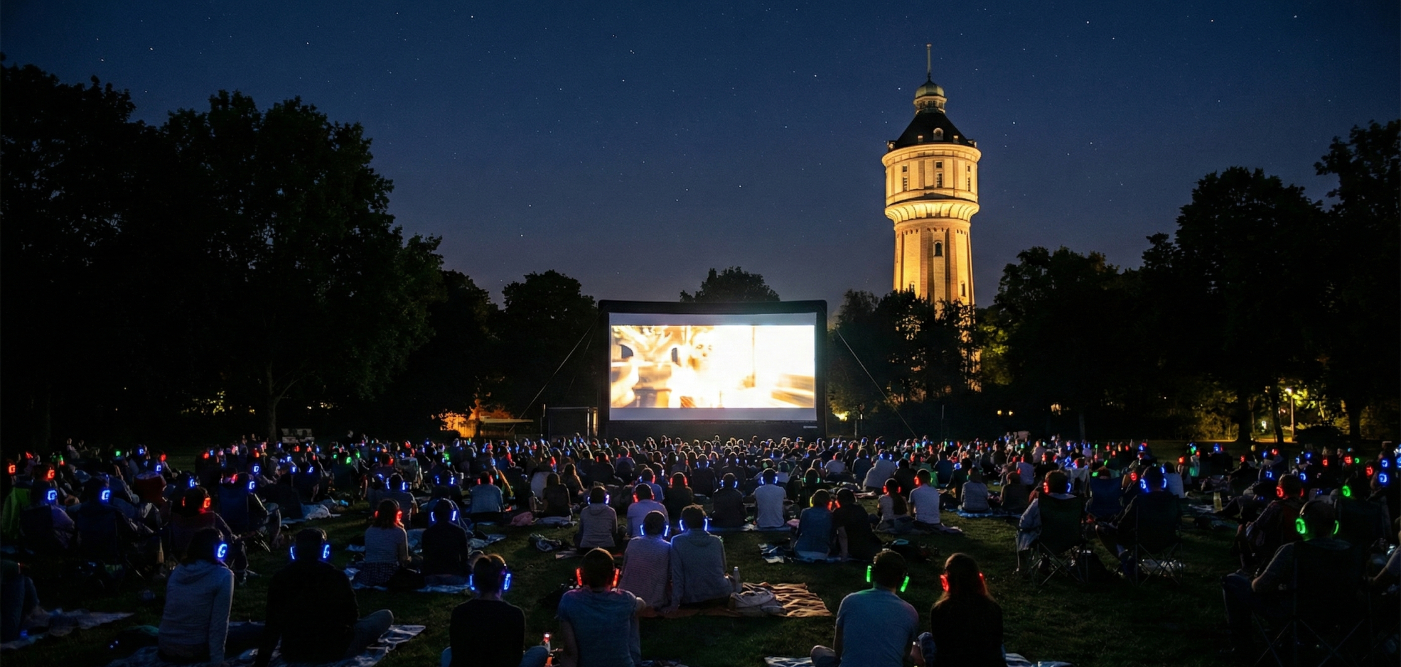 Das wohl atmosphärischste Freiluftkino ist das "Schanzenkino" mitten im Sternschanzenpark. Die Leinwand wird auf der Rückseite des alten Wasserturms (heute ein Hotel) aufgebaut. Die Zuschauer sitzen auf einer ansteigenden Wiese, man kann sich Stühle leihen oder einfach die eigene Picknickdecke mitbringen. Das Besondere hier: Der Ton kommt nicht aus Lautsprechern, sondern über Funkkopfhörer, die man am Eingang erhält. Das sorgt für einen perfekten Sound ohne störende Nebengeräusche und hat den angenehmen Nebeneffekt, dass man sich mit seinem Nachbarn unterhalten kann, wenn man die Kopfhörer abnimmt, ohne andere zu stören. Wenn es dunkel wird und die Lichter der Stadt rund um den Park angehen, entsteht eine unvergleichliche, intime Stimmung inmitten des urbanen Trubels.