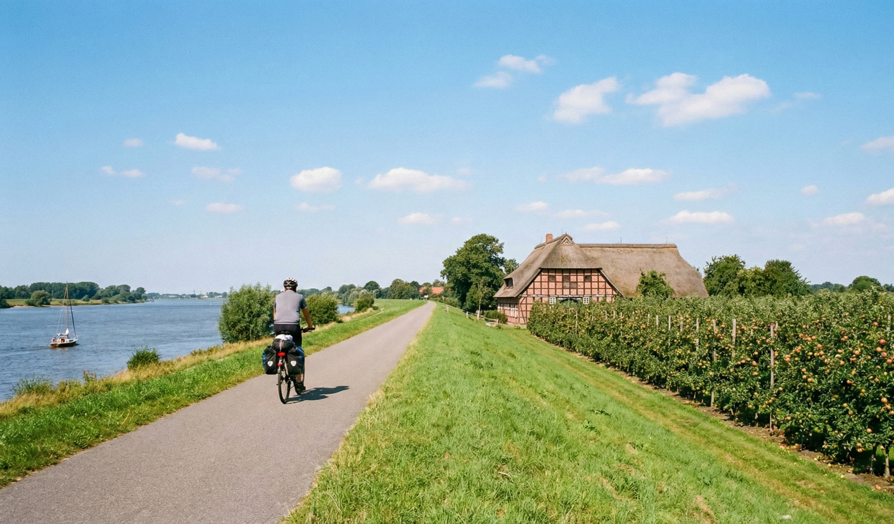 Hamburg ist großartig, aber manchmal braucht man auch im Sommer eine Pause vom urbanen Trubel. Zum Glück liegt eines der schönsten und größten Obstanbaugebiete Europas direkt vor der Haustür: das Alte Land. Eine Radtour dorthin ist der perfekte Tagesausflug, um Landluft zu schnuppern, historische Fachwerkhäuser zu bewundern und tonnenweise frisches Obst zu genießen.