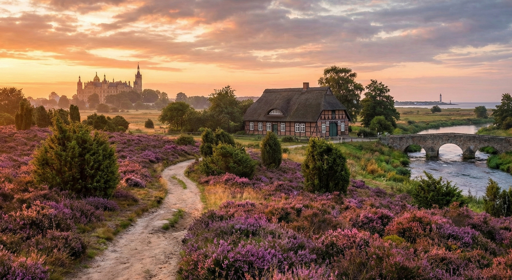 Die gute Nachricht ist: Hamburg liegt nicht isoliert. Das Umland der Metropolregion ist von einer landschaftlichen und kulturellen Vielfalt geprägt, die in Deutschland ihresgleichen sucht. Im Norden locken die langen Sandstrände der Ostsee und die raue Schönheit der Nordsee. Im Süden erstreckt sich ein violettes Blütenmeer, das an die Provence erinnert. Im Osten warten prunkvolle Schlösser und mittelalterliche Gassen, die UNESCO-Weltkulturerbe-Status genießen, und direkt vor den Toren der Stadt liegt das größte geschlossene Obstanbaugebiet Nordeuropas. Die Auswahl an Ausflugszielen im Umland von Hamburg ist schlichtweg überwältigend.